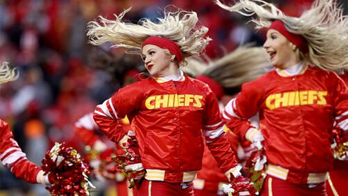 Photos: Kansas City Chiefs cheerleaders KANSAS CITY, MISSOURI - JANUARY 19: The Kansas City Chiefs cheerleaders celebrate on the field after defeating the Tennessee Titans in the AFC Championship Game at Arrowhead Stadium on January 19, 2020 in Kansas City, Missouri. The Chiefs defeated the Titans 35-24. (Photo by Peter Aiken/Getty Images) (Peter Aiken)