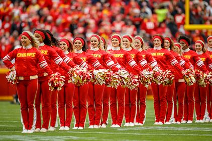 Photos: Kansas City Chiefs cheerleaders KANSAS CITY, MO - DECEMBER 29: The Kansas City Chiefs cheerleaders line up for player introductions prior to the game against the Los Angeles Chargers at Arrowhead Stadium on December 29, 2019 in Kansas City, Missouri. (Photo by David Eulitt/Getty Images) (David Eulitt)