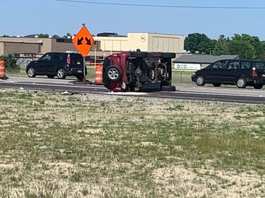 PHOTOS: 1 taken to hospital after rollover crash on I-75 in West Carrollton