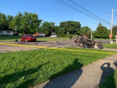Photos: 2 children, 2 adults injured in Dayton crash; Witnesses report high-speed, blown stop sign