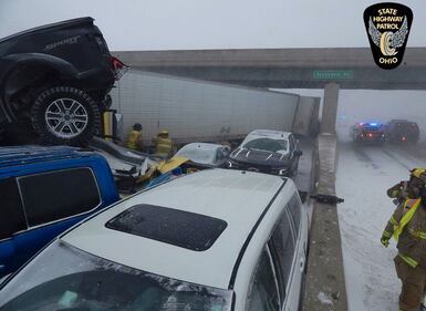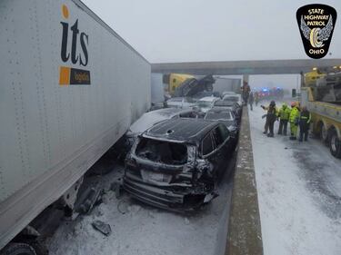 50-car pileup shuts down Ohio Turnpike Whiteout conditions were blamed for the crashes, which shut down the turnpike for hours in both directions. (Toledo Fire & Rescue)