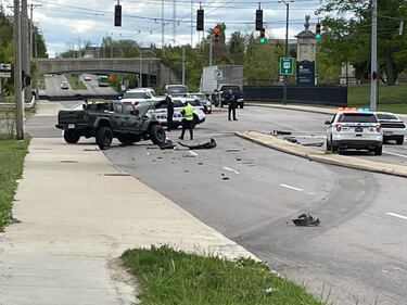 PHOTOS: Man hospitalized following crash in Dayton
