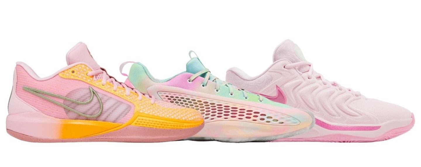 • Nike Zoom GT Cut Series: The Nike Zoom GT Cut and its successors, the GT Cut 2 and GT Cut 3 have been seen in notable pink colorways, including the "Think Pink" and "Pink Flash" editions, often associated with the Kay Yow Cancer Fund.