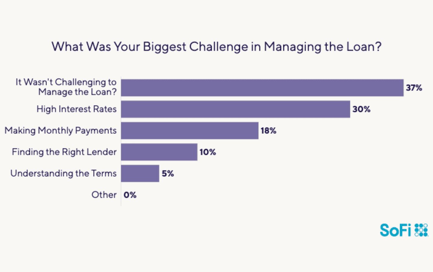 - Even so, respondents most commonly identified high interest rates as the biggest challenge to managing their loans.