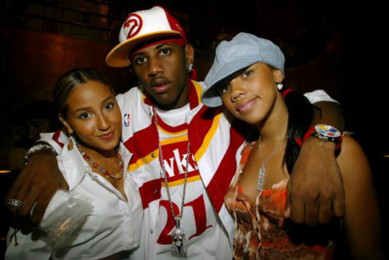 Photos: Adrienne Bailon through the years 2004: American actress and singer Raven poses with actress Adrienne Bailon as they arrive for the Disney Channel Original Movies Los Angeles premiere of "Tiger Cruise" held on July 27, 2004, at the Directors Guild of America in Hollywood, California. (Frazer Harrison/Getty Images)