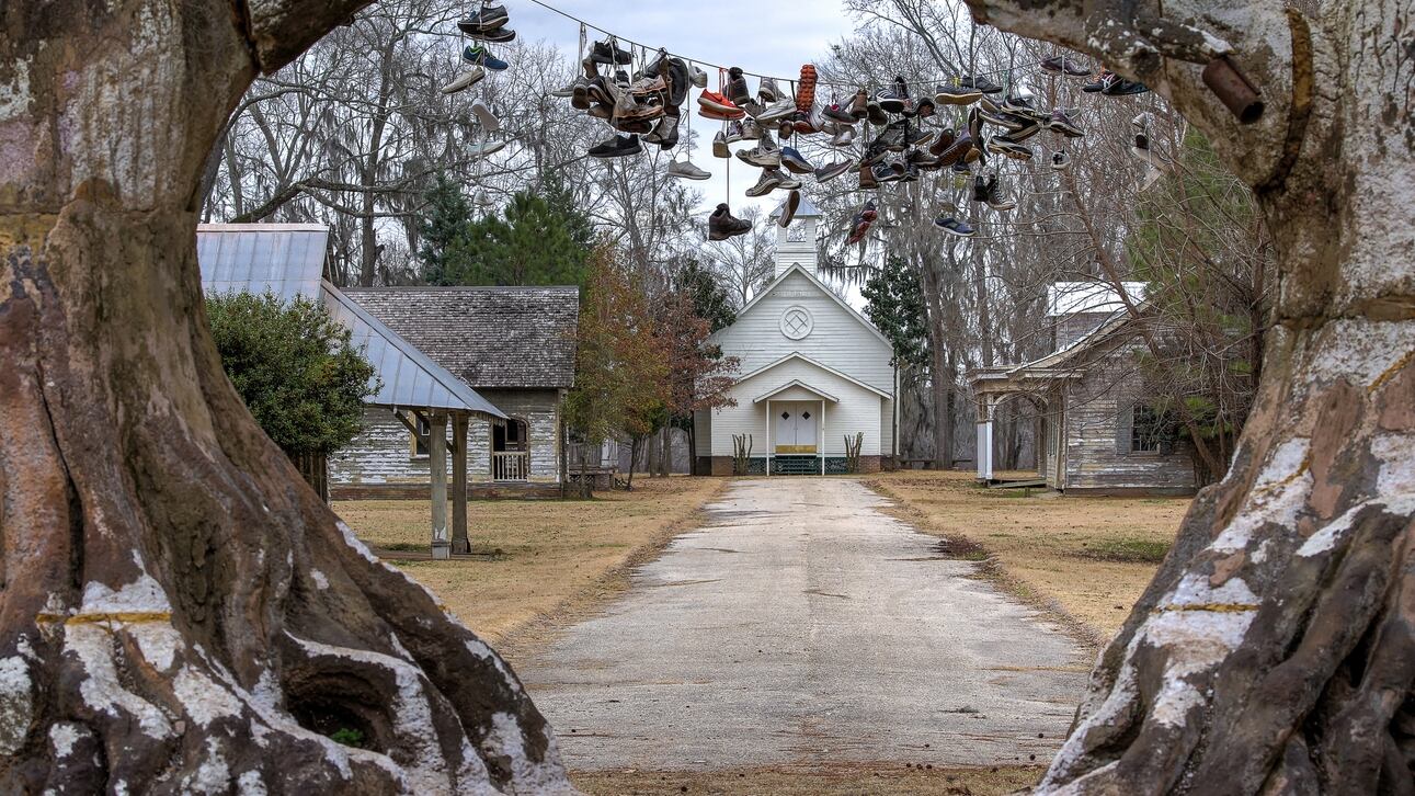 Spectre ghost town from Big Fish film The iconic set for the town of Spectre in the film 'Big Fish' still stands in Millbrook, Alabama and is open to tourists for recreation. (Wirestock/Getty Images)