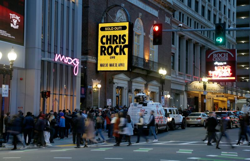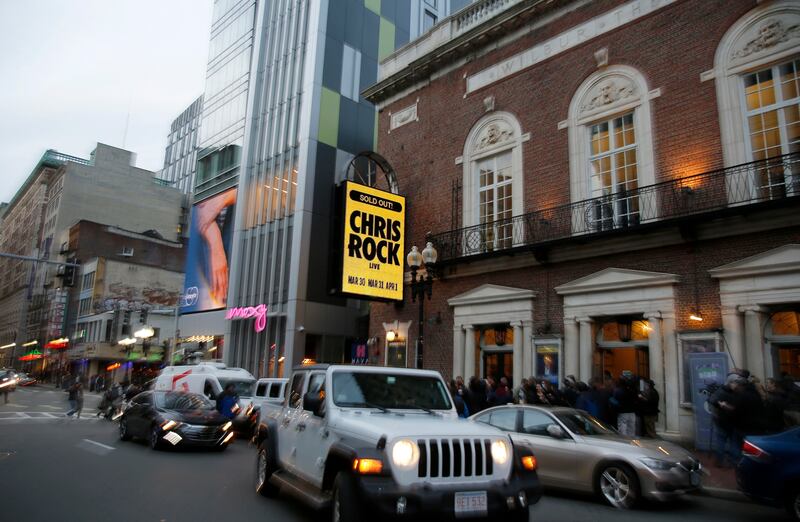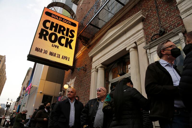 Photos: Chris Rock performs in Boston in first show since Will Smith Oscars slap The marquee advertises Chris Rock as ticket holders wait to enter outside the Wilbur Theatre, Wednesday, March 30, 2022, in Boston. (AP Photo/Mary Schwalm)