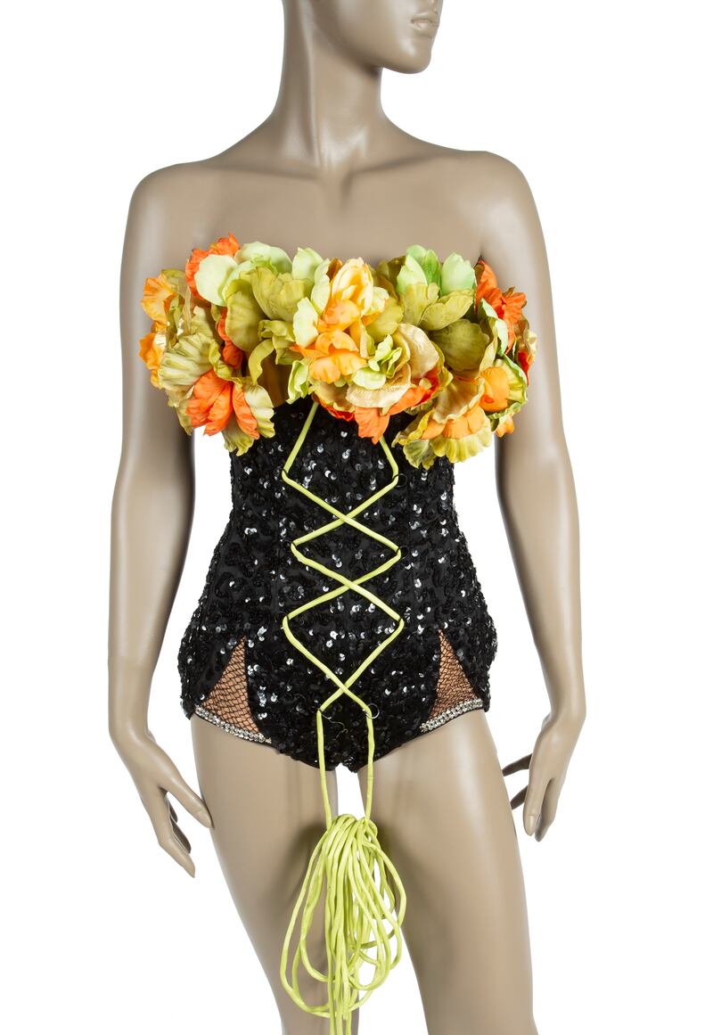 Photos: Treasures for sale in “Hollywood Legends” auction A 19th Century-style bodice worn by Marilyn Monroe in a 1956 Jack Cardiff photo session. The boned faille bodice is embellished with ivory lace, black silk velvet, and jet-like foliate buttons. Originally from The Jack Cardiff Collection. Accompanied by a piece of the original missing button and a copy of Cameraman: The Life and Work of Jack Cardiff (Modus Operandi Films, 2010). (Julien's Auctions)
