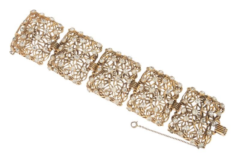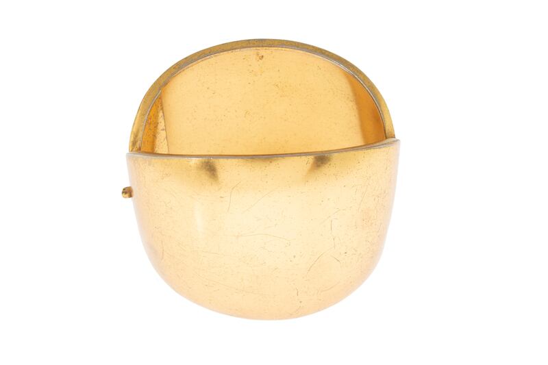 Photos: Treasures for sale in “Hollywood Legends” auction A smooth, gold-tone curved cuff bracelet of hinged design, composed of two curved oval-shaped panels, designed by Joseff of Hollywood. No. B2151. Worn by Lucille Ball in "Best Foot Forward" (Metro-Goldwyn-Mayer, 1943). From The Collection of Joseff of Hollywood.