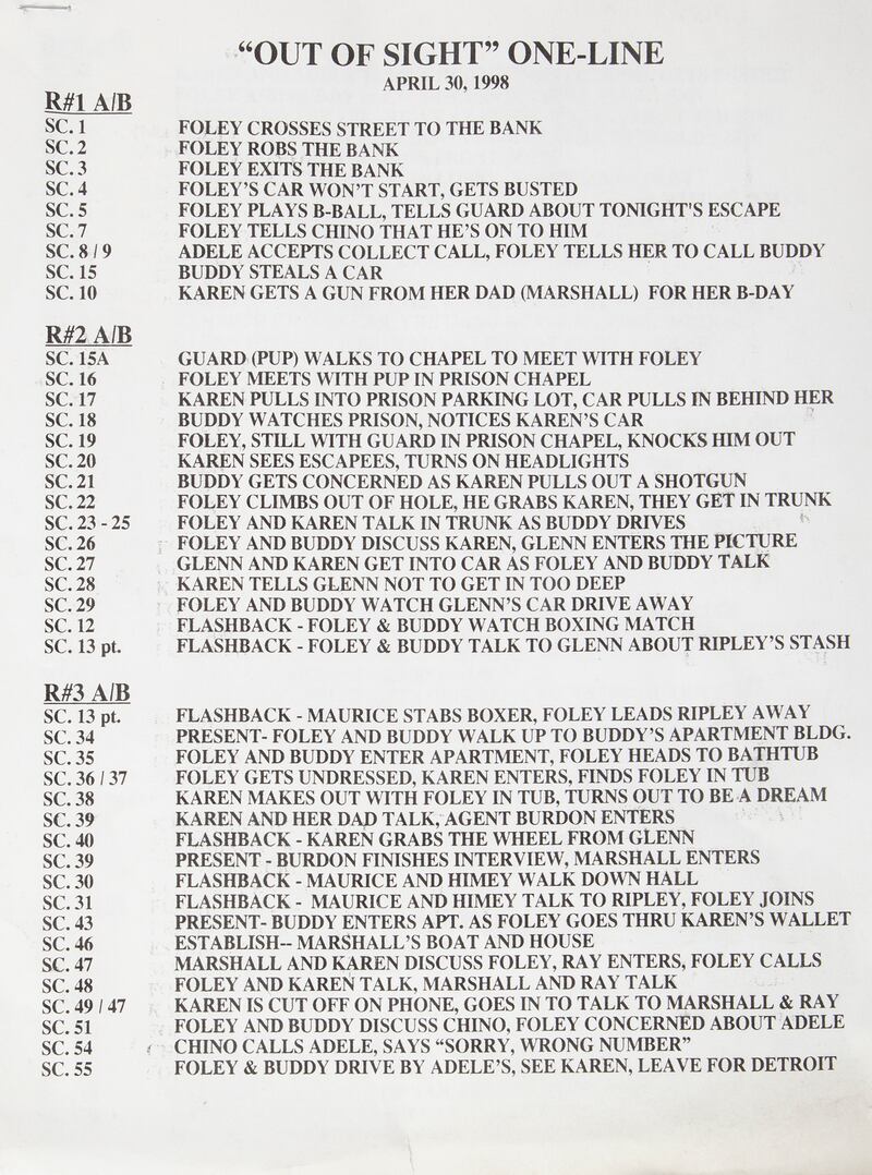 Photos: Treasures for sale in “Hollywood Legends” auction An original lined script for the classic Steven Soderbergh film “Out of Sight” (Universal Pictures, 1998) by Scott Frank, from the estate of editor Anne V. Coates, who received an Academy Award nomination for her work on the film. The item is accompanied by a one-line (abridged shooting) schedule dated April 30, 1998. The script is dated January 26, 1998 and labeled "COMPLETED SHOOTING SCRIPT/TOTAL TIME 147:36/(NOTE: ABOVE TIMING DOES NOT INCLUDE SECOND UNIT)." (Julien's Auctions)