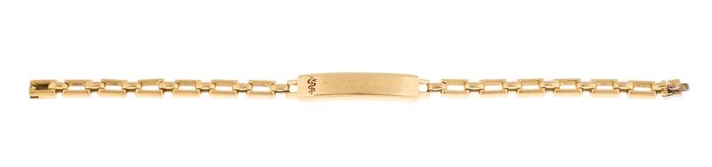Photos: Treasures for sale in “Hollywood Legends” auction A Cartier 18K gold medic link bracelet from the personal collection of James Garner, worn by the actor in the heartbreaking final scene of The Notebook(New Line Cinema, 2004) and in many other projects and venues. Garner also wears the bracelet as "Jim Rockford" in the series of made for TVThe Rockford Filesmovies (MGB Productions, 1994-99) and as "Shep Walker" inThe Divine Secrets of the Ya-Ya Sisterhood(All Girl Productions, 2002). He was photographed wearing the bracelet while accepting the SAG Lifetime Achievement Award in 2005, at the Rose Bowl and the Oklahoma Centennial Parades in 2007, and elsewhere. The bracelet centers upon a gold plaque, with enameled medic detail, inscribed, To Gigi with Love, the verso, From J.G. and L.G. 01-04-09, to the rectangular link bracelet, with French assay mark and makers mark After he suffered a stroke in 2008, Garner gave the bracelet to his daughter Gigi and inscribed it. "L.G." are the initials of his wife, Lois. (Julien's Auctions)