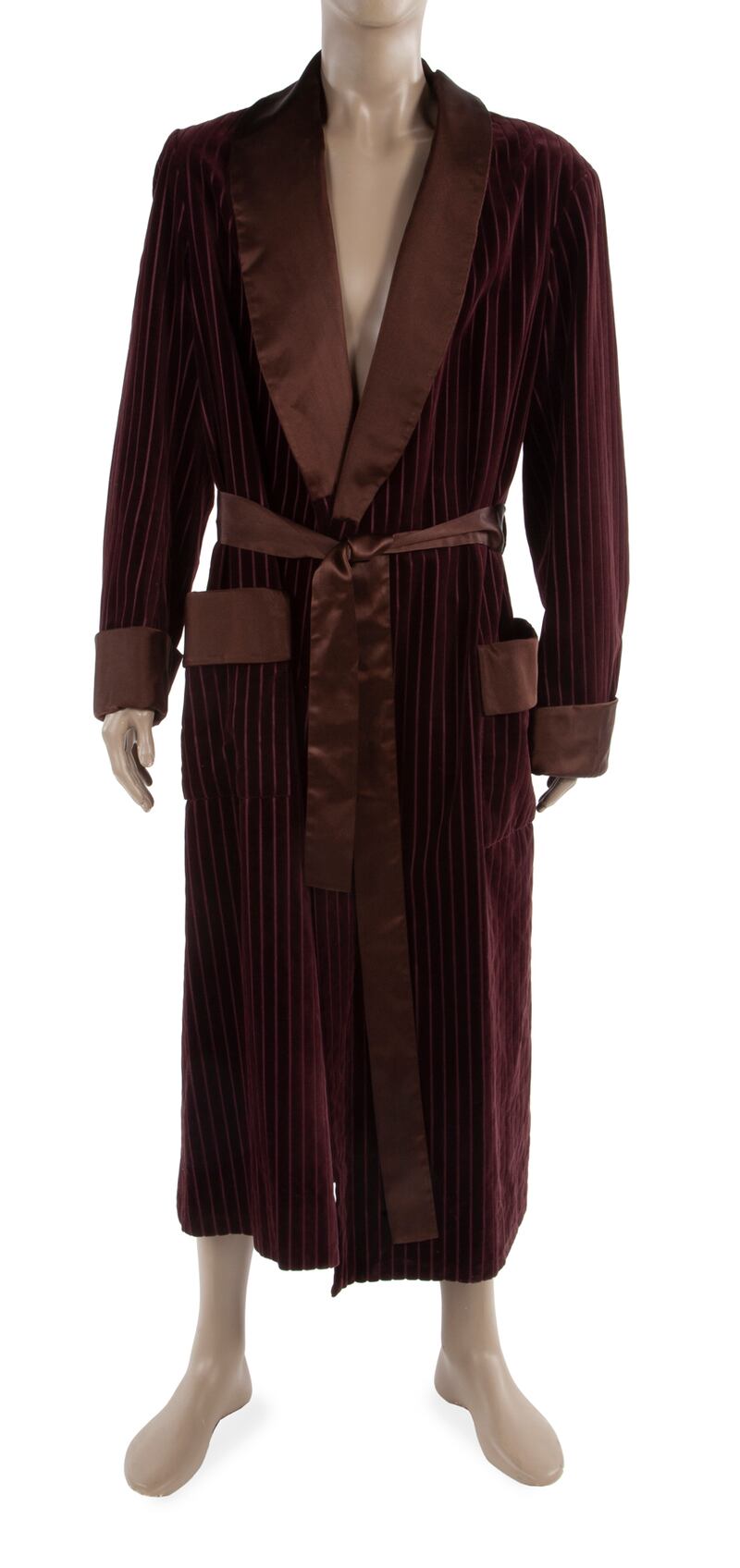 Photos: Treasures for sale in “Hollywood Legends” auction An elegant robe worn by James Garner as "King Marchand" in the Blake Edwards comedy "Victoria Victoria" (Metro-Goldwyn-Mayer, 1982). Made of maroon ribbed velvet with brown silk trim on the lapels, cuffs, pockets, and self belt, and lined in rust colored satin; no labels present. This lot includes a DVD of the film.
