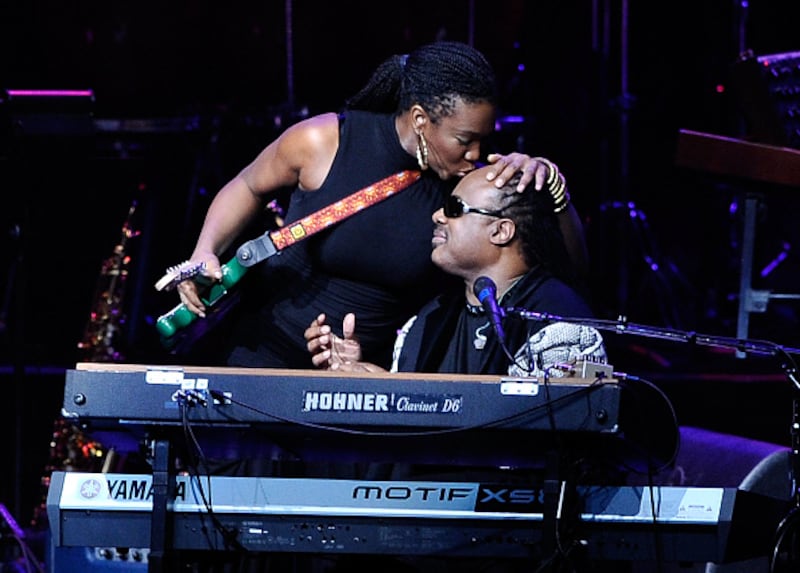 Photos: India Arie through the years 2009: Singer India Arie (left) and Stevie Wonder perform at Stevie Wonder's House Full of Toys Benefit Concert at Nokia LA Live on December 12, 2009, in Los Angeles. (Michael Buckner/Getty Images)