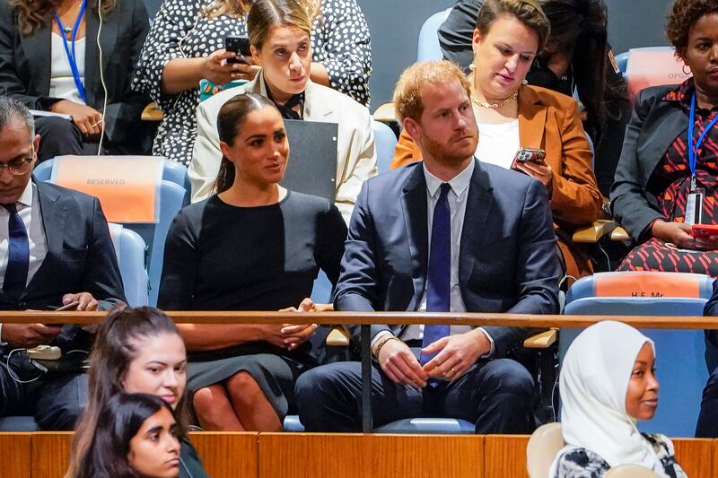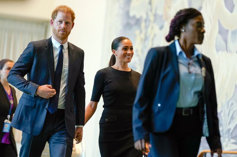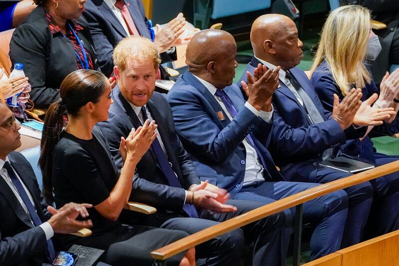 Photos: Prince Harry, Meghan Markle visit UN on Nelson Mandela Day Britain's Prince Harry, right, and his wife Meghan Markle, the Duke and Duchess of Sussex, attend the U.N. General Assembly annual celebration of Nelson Mandela International Day, on Monday, July 18, 2022, at United Nations headquarters. (AP Photo/John Minchillo)