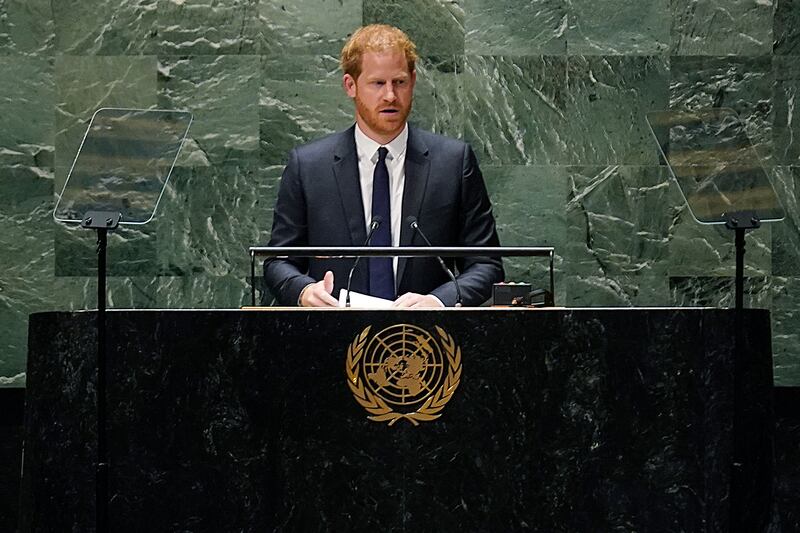 Photos: Prince Harry, Meghan Markle visit UN on Nelson Mandela Day Prince Harry speaks at United Nations headquarters, Monday, July 18, 2022. The Duke and Duchess of Sussex were at the UN to mark the observance of Nelson Mandela International Day. (AP Photo/Seth Wenig)