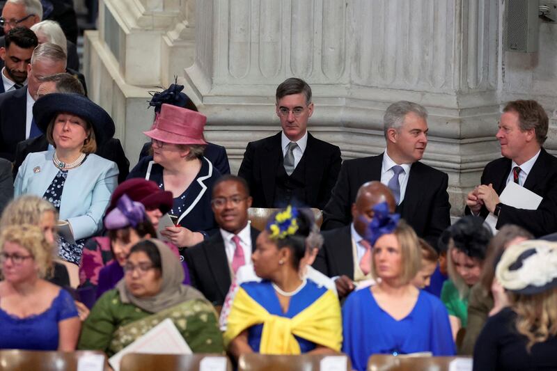 Photos: British royals, minus Queen Elizabeth, attend Platinum Jubilee church service British Minister of State Jacob Rees-Mogg, back center, attends the National Service of Thanksgiving held at St Paul's Cathedral as part of celebrations marking the Platinum Jubilee of Britain's Queen Elizabeth II, in London, Friday, June 3, 2022. (Phil Noble/Pool photo via AP)