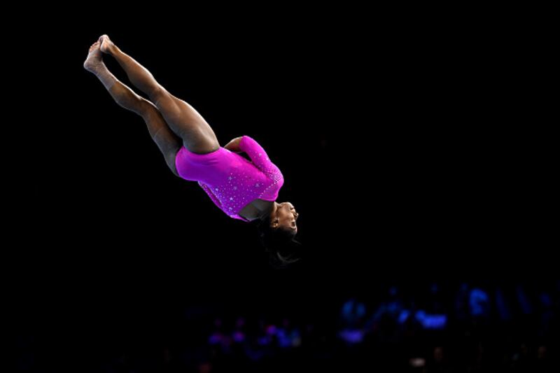2023 Artistic Gymnastics World Championships ANTWERP, BELGIUM - SEPTEMBER 28: Simone Biles of United States practices during the 2023 FIG Artistic Gymnastics World Championships Training Session at the Antwerp Sportpaleis on September 28, 2023 in Antwerp, Belgium. (Photo by Matthias Hangst/Getty Images) (Matthias Hangst/Getty Images)