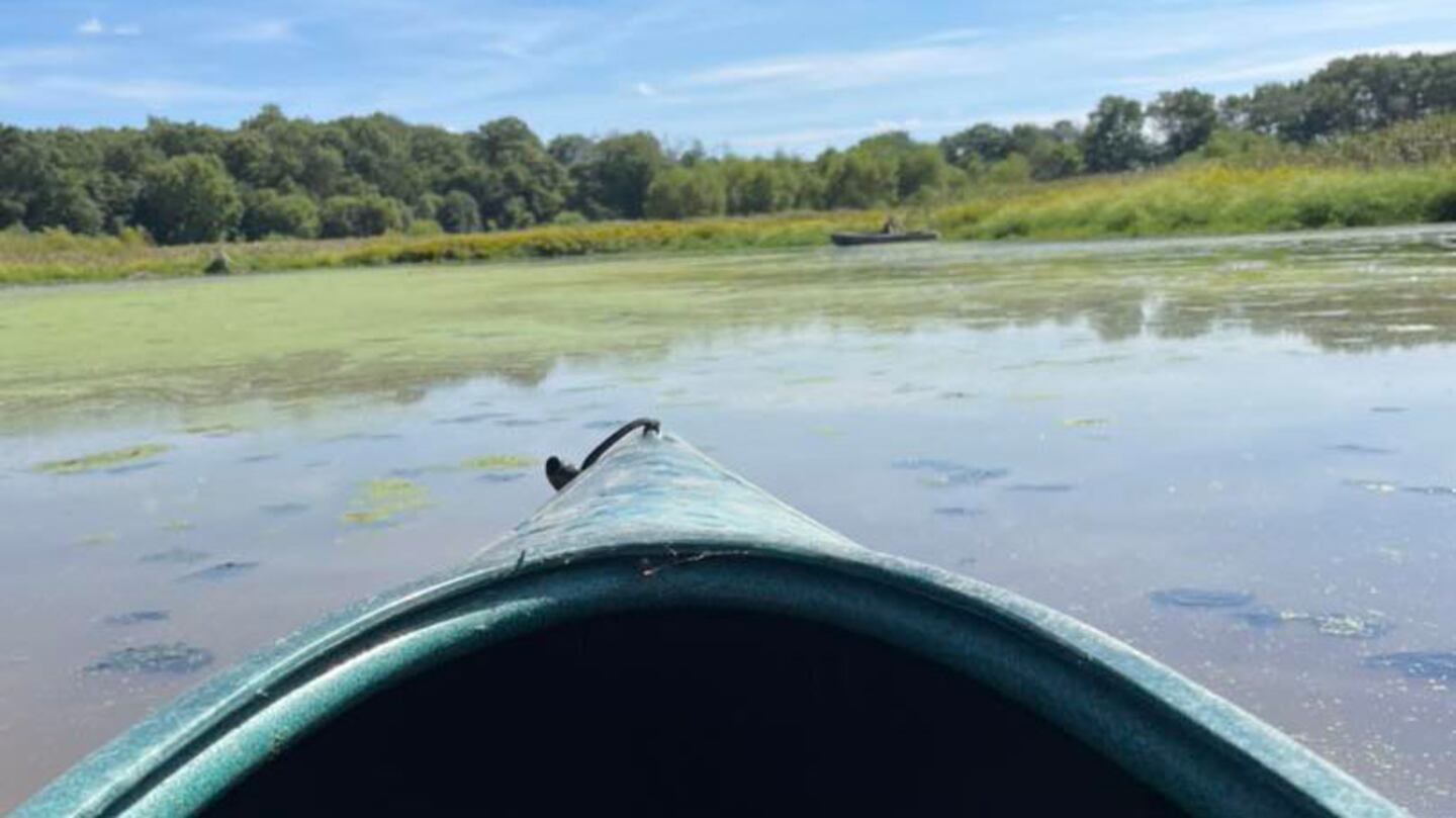 An Indiana conservation officer shared a photo on Facebook showing his approach through the swamp to helping the men in a kayak. The officer was able to use a knife to cut the hunter’s waders off the hunter and was then able to pull the man into a rowboat.