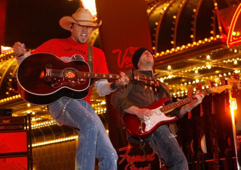 Through the years LAS VEGAS - APRIL 03: Musician Jason Aldean performs during the Academy of Country Music all-star concert at the Fremont Street Experience on April 3, 2009 in Las Vegas, Nevada. (Photo by Ethan Miller/Getty Images) (Ethan Miller/Getty Images)