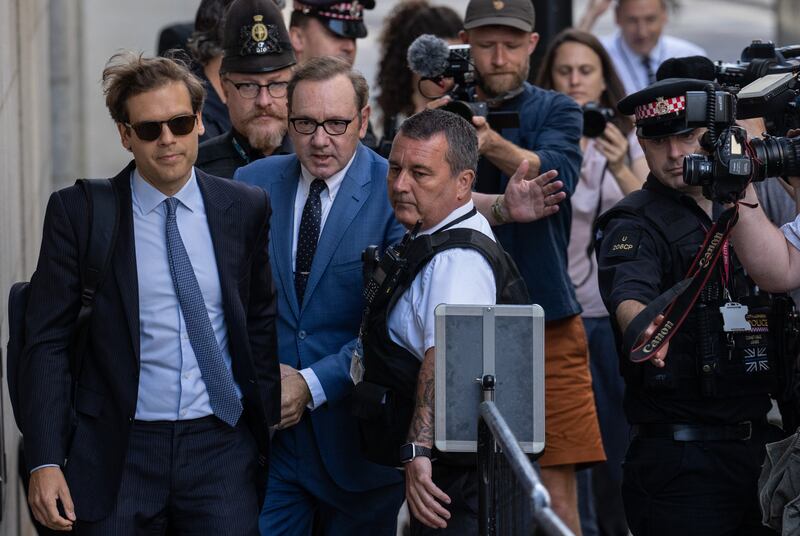 Photos: Kevin Spacey pleads not guilty to sexual assault charges in UK Actor Kevin Spacey, center, arrives at the Old Bailey, in London, Thursday, July 14, 2022. Spacey appeared Thursday in a court in London after he was charged with sexual offenses against three men. (AP Photo/Frank Augstein)