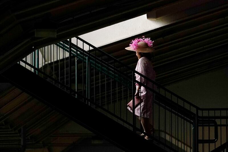 Hats at the 2022 Kentucky Derby A woman walks to the grandstand before the 148th running of the Kentucky Derby horse race at Churchill Downs Saturday, May 7, 2022, in Louisville, Ky. (AP Photo/Brynn Anderson) (Brynn Anderson/AP)