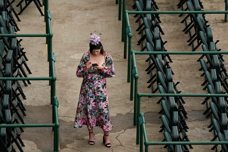 2022 Kentucky Derby in photos A fan walks through the grandstand before the 148th running of the Kentucky Derby horse race at Churchill Downs Saturday, May 7, 2022, in Louisville, Ky. (AP Photo/Brynn Anderson) (Brynn Anderson/AP)