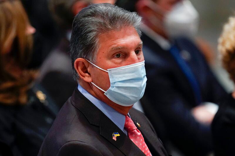 Madeleine Albright memorial service Sen. Joe Manchin, D-W.Va., attends a funeral service for former Secretary of State Madeleine Albright at the Washington National Cathedral, Wednesday, April 27, 2022, in Washington. (AP Photo/Andrew Harnik) (Andrew Harnik/AP)