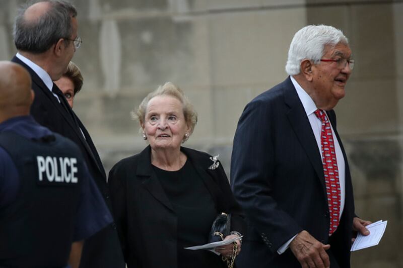 Through the years WASHINGTON, DC - SEPTEMBER 1: Former U.S. Secretary of State Madeleine Albright arrives at the Washington National Cathedral for the funeral service for the late Senator John McCain, September 1, 2018 in Washington, DC. Former presidents Barack Obama and George W. Bush are set to deliver eulogies for McCain in front of the 2,500 invited guests. McCain will be buried on Sunday at the U.S. Naval Academy Cemetery. (Photo by Drew Angerer/Getty Images) (Drew Angerer/Getty Images)