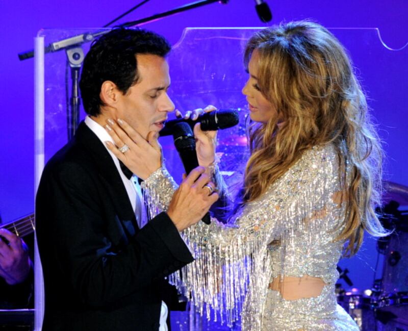 Through the years BEVERLY HILLS, CA - OCTOBER 23: Singer Marc Anthony (L) and his wife actress/singer Jennifer Lopez perform onstage at the 32nd Anniversary Carousel of Hope Gala at the Beverly Hilton Hotel on October 23, 2010 in Beverly Hills, California. (Photo by Kevin Winter/Getty Images) (Kevin Winter/Getty Images)