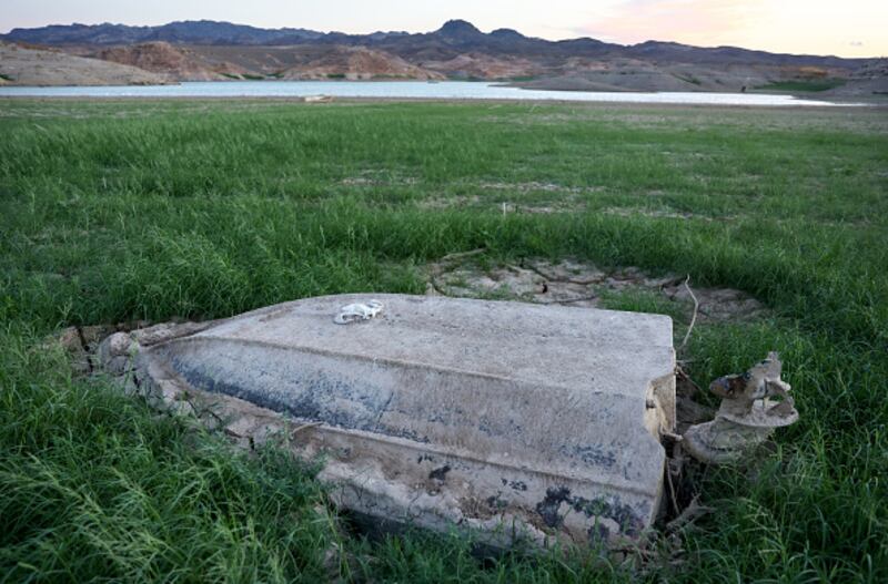 Photos: Lake Mead inches closer to 'dead pool' water levels A formerly sunken boat rests on a now-dry section of lakebed at the drought-stricken Lake Mead on June 23, 2022, in the Lake Mead National Recreation Area, Nevada. (Mario Tama/Getty Images)