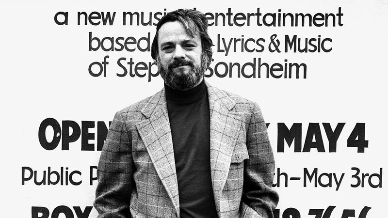 Stephen Sondheim through the years 1985: American composer Stephen Sondheim and playwright James Lapine pose in front of the marquee of the Booth Theatre on 45th Street, New York City. They won the Pulitzer Prize and the Tony Award for their musical, 'Sunday In The Park With George,' playing at the theatre. (Sara Krulwich/New York Times Co./Getty Images, File)