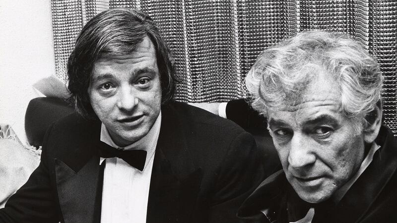 Stephen Sondheim through the years 1973: Stephen Sondheim and Leonard Bernstein attend "A Musical Tribute to Stephen Sondheim at the Shubert Theater in New York on March 11, 1973. (Ron Galella/Ron Galella Collection via Getty Images, File)