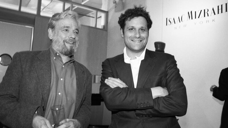 Stephen Sondheim through the years 1996: American composer and lyricist Stephen Sondheim and fashion designer Isaac Mizrahi at Mizrahi's Soho showroom in July 1996 in New York City, New York. (Catherine McGann/Getty Images, File)
