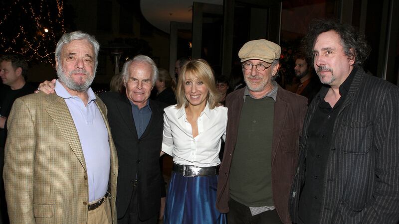 Stephen Sondheim through the years 2007: Composer Stephen Sondheim, producer Richard D. Zanuck, DreamWorks CEO Stacey Snider, producer Steven Spielberg and director Tim Burton arrive at the special screening of DreamWorks Pictures' "Sweeney Todd" at the Paramount Theater on December 5, 2007 in Los Angeles, California. (John Shearer/WireImage, File)