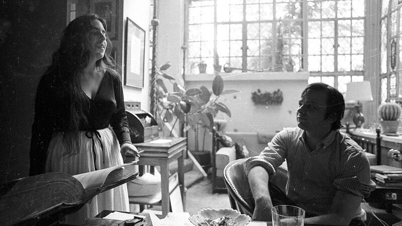 Stephen Sondheim through the years 1968: Singer/songwriter Laura Nyro relaxes at an apartment with fellow songwriter Stephen Sondheim on October 3, 1968 in New York City, New York. (Michael Ochs Archives/Getty Images, File)