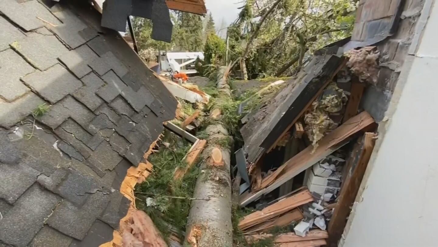 “It was really loud. And then just progressively as the tree settled, more and more was coming in. Then the rain and hail was coming through. It was really crazy,” Jacobsen told KIRO.