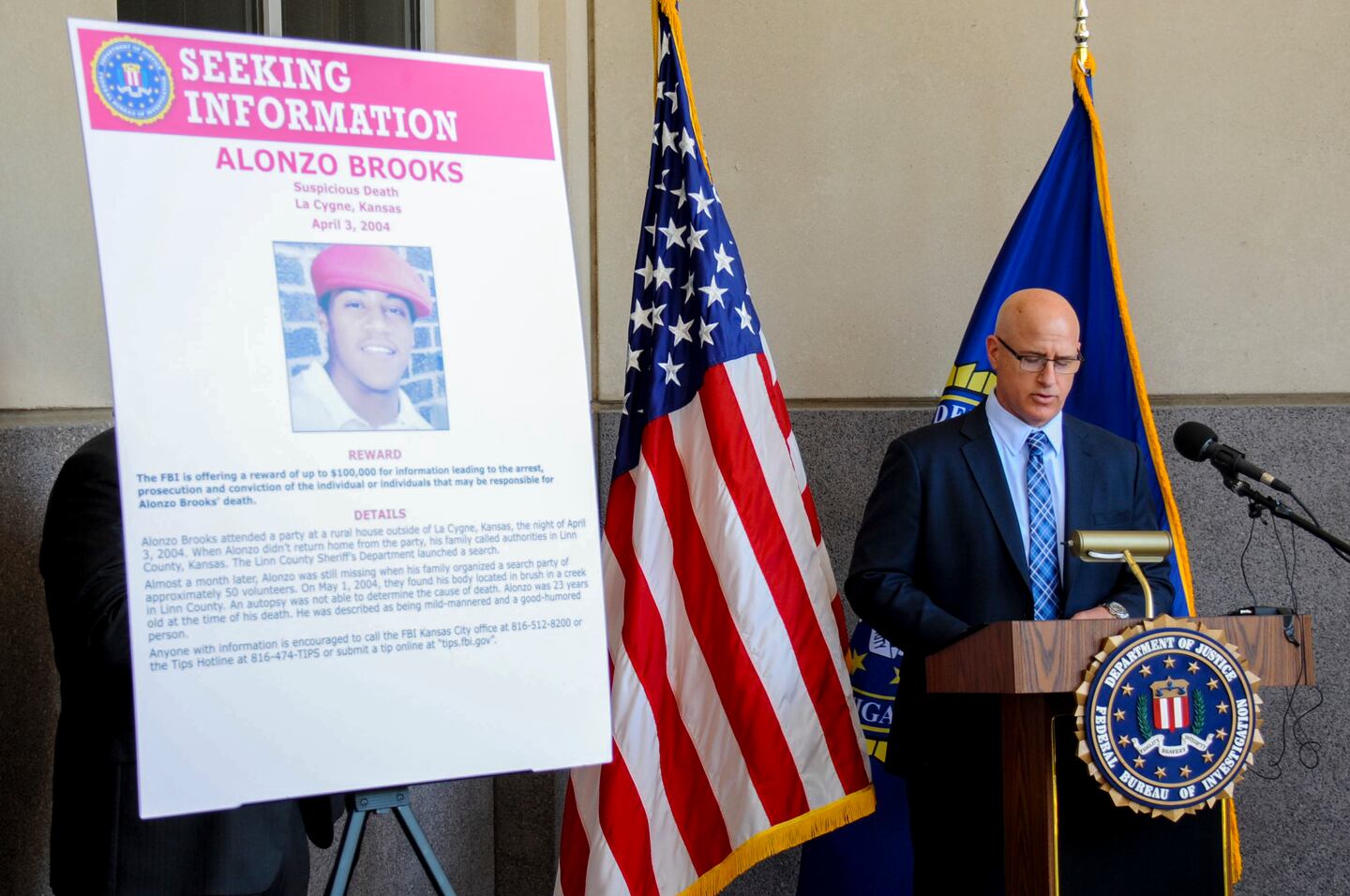 Brooks, 23, vanished from a party the night of April 3, 2004. According to federal officials, Brooks was one of only three Black men among about 100 people at the party, which was held in a farmhouse on the outskirts of La Cygne.