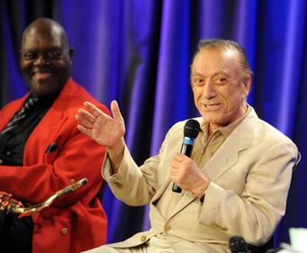 Art Laboe through the years LOS ANGELES, CA - MAY 01: Big Jay McNeely and Art Laboe onstage during Rock, Race And Radio at The GRAMMY Museum on May 1, 2012 in Los Angeles, California. (Photo by Mark Sullivan/WireImage) (Mark Sullivan/WireImage via Getty Images)