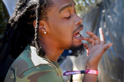 Astroworld aftermath Still wearing his concert wristband, festival attendant Joshua Robinson recounts his experiences after several people died and scores were injured during a music festival the night before, Saturday, Nov. 6, 2021, in Houston. (AP Photo/Michael Wyke) (Michael Wyke/AP)