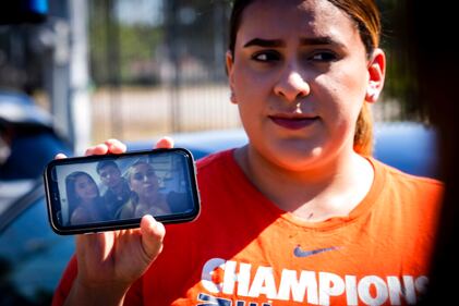 Astroworld aftermath Stacey Sarmiento holds a photo up of her posing with her friend, Rudy Pena, who died in a crush of people at the Astroworld music festival in Houston. (AP Photo/Robert Bumsted) (Robert Bumsted/AP)
