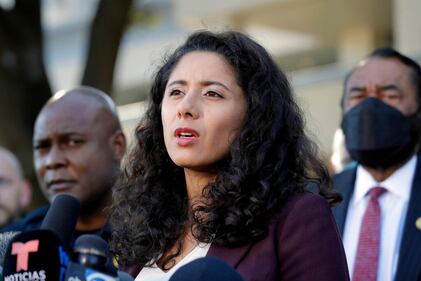 Astroworld aftermath Houston County Judge Lina Hidalgo, center, flanked by Houston Police Chief Troy Finner, left, and U.S. Rep. Al Green, right, speaks during a news conference, Saturday, Nov. 6, 2021, in Houston, after several people died and scores were injured during a music festival the night before. (AP Photo/Michael Wyke) (Michael Wyke/AP)