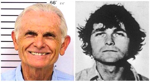 Bruce Davis, left, in March 12, 2014, and at right in a 1970 photo. Davis was convicted of taking part in the Hinman and Shea murders but was not involved in the Tate-LaBianca killings.