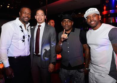 Photos: Coolio through the years 2016: Actor/comedian Chris Tucker, head coach Tyronn Lue of the Cleveland Cavaliers, rapper Coolio and musician Jarez attend the Coach Woodson Las Vegas Invitational red carpet and pairings party at 1 OAK Nightclub at The Mirage Hotel & Casino on July 10, 2016, in Las Vegas. (Bryan Steffy/Getty Images for PGD Global)