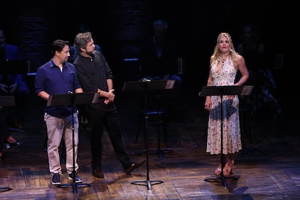 Dawson's Creek Class Reunion NEW YORK, NEW YORK - SEPTEMBER 22: Lin-Manuel Miranda, Joshua Jackson listen as Busy Philipps speaks onstage during the Dawson's Creek Class Reunion at Richard Rodgers Theatre on September 22, 2025 in New York City. (Photo by Cindy Ord/Getty Images for F Cancer) (Cindy Ord/Getty Images for F Cancer)