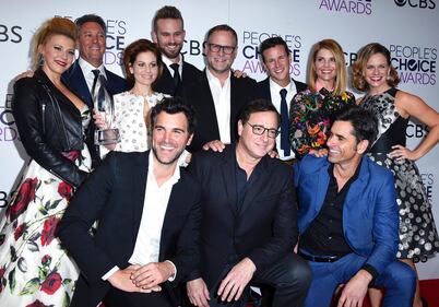 Jodie Sweetin Jodie Sweetin, front row from left, Jeff Franklin, Candace Cameron-Bure, John Brotherton, Dave Coulier, Scott Weinger, Lori Laughlin, Andrea Barber, and bottom row from left, Juan Pablo di Pace, Bob Saget, and John Stamos pose in the press room with the award for favorite premium comedy series for "Fuller House" at the People's Choice Awards at the Microsoft Theater on Wednesday, Jan. 18, 2017, in Los Angeles. (Photo by Jordan Strauss/Invision/AP) (Jordan Strauss/Jordan Strauss/Invision/AP)