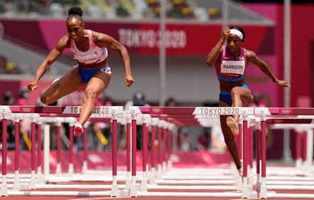Photos: Kendra 'Keni' Harrison wins silver in 100-meter hurdles at Tokyo Olympics Jasmine Camacho-Quinn, of Puerto Rico, clears the final hurdle to win gold ahead of Kendra Harrison, of United States, silver, in the women's 100-meters hurdles final at the 2020 Summer Olympics, Monday, Aug. 2, 2021, in Tokyo, Japan. (AP Photo/Martin Meissner)