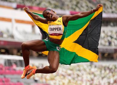Photos: Kendra 'Keni' Harrison wins silver in 100-meter hurdles at Tokyo Olympics Megan Tapper, of Jamaica celebrates after winning the bronze medal in the women's 100-meters hurdles final at the 2020 Summer Olympics, Monday, Aug. 2, 2021, in Tokyo, Japan. (AP Photo/Martin Meissner)