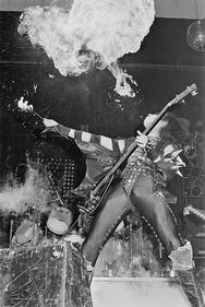Through the years Bassist Gene Simmons of American heavy metal group Kiss adds fire-eating to the group's performance at the Calderone Theater, New York, 24th August 1975. (Photo by Redferns/Getty Images) (Fin Costello/Redferns)