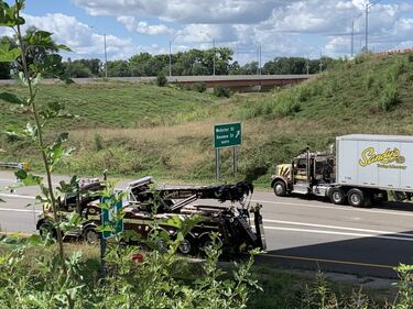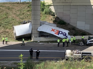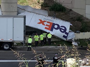 PHOTOS: At least 1 dead after semi truck flips onto side