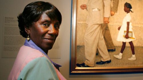 Lucille Bridges FILE - In this July 20, 2006, file photo, Lucille Bridges poses next to the original 1964 Norman Rockwell painting, "The Problem We All Live With," showing her daughter Ruby. New Orleans' mayor announced Tuesday, Nov. 10, 2020, that Lucille Bridges had died at the age of 86. (Steve Ueckert/AP)